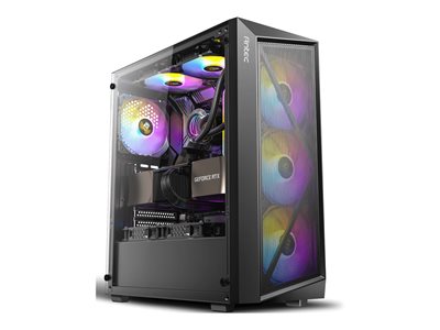 Fonctionnalités du boîtier système | | Filtre à poussière de panneau supérieur, filtre antipoussière sur la partie inférieure, bouton de contrôle LED, ventilateurs ARGB, panneau frontal maillé