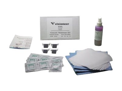 Contenu de l'emballage | | 3 chiffons antistatiques pour scanner, 1 ensemble de rouleaux, 5 chiffons de nettoyage secs, 10 chiffons de nettoyage secs non pelucheux, 1 flacon de solution nettoyante désionisée anti-traces, 10 lingettes nettoyantes préhumidifiées à l'alcool isopropylique, 2 ensembles de coussinets ADF