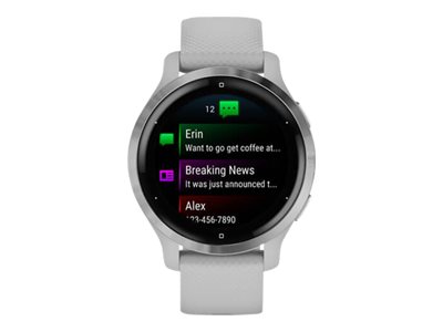 Fonctionnalités | | Fonction de recherche de téléphone, zones HR, fiche d'évaluation numérique, Move IQ, compatible avec Garmin Connect, alarme, Trouver mon appareil, fonction d'entraînement respiratoire, stockage et lecture de musique, rejet d'un appel, Garmin Elevate, heures de lever/coucher de soleil, LiveTrack, TrueUp, Body Battery, tour auto, Physio TrueUp, Garmin AutoShot, contrôle de lecture de la musique, information météo