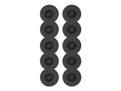 Larges coussinets d'oreille en cuir pour Jabra PRO 9400 (diamètre de 5,5 cm). Disponibles en option, ces larges coussinets d'oreille offrent une réduction de bruit passive supplémentaire de 3 à 5 dB par rapport aux modèles standard, ainsi qu'un meilleur confort.