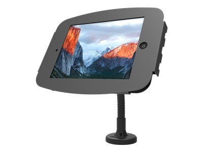 Le boîtier Space iPad a des bords arrondis et des coins ouverts pour une meilleure ventilation, et offre un accès limité aux boutons et aux entrées. Un cache amovible du bouton d'accueil, qui limite l'accès au bouton principal si nécessaire, est inclus. Comme pour tous les dispositifs de sécurité pour tablettes de Maclocks, la tablette peut se charger en continu lorsqu'elle est fixée dans le boîtier. Des câbles de connexion pour les périphériques peuvent également être connectés.