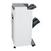 Le réceptacle supérieur de l'unité de finition prend en charge jusqu'à 500 feuilles de papier dans les formats A3, A4, A5, Executive, Folio, JIS B4, JIS B5, Lettre US, Legal, Ledger, tabloïd et Statement. Ce réceptacle accepte le papier de grammage 60 à 220 g/m et le papier glacé.Le réceptacle inférieur de l'unité de finition prend en charge jusqu'à 3000 feuilles de papier (papier ordinaire de grammage 75g/m ) dans les formats A3, A4, Executive, Folio, JIS B4, JIS B5, Lettre US, Legal, Ledger et tabloïd. Ce réceptacle accepte le papier de grammage 60 à 220 g/m . Prend en charge l'agrafage 4 positions (capacité de 5000 agrafes), la perforation au format Lettre US (2 ou 3 trous) ou A4 (2 ou 4 trous) et le décalage (15 mm).La capacité du réceptacle inférieur est réduite en cas d'utilisation de la fonction d'agrafage. Il est possible d'agrafer jusqu'à 50 feuilles à la fois. La perforation du papier (60 à 176 g/m ) et le décalage sont également pris en charge. Le réceptacle inférieur est équipé d'un détecteur de niveau de papier (vide et plein). Format maximum du papier pour les deux réceptacles : 29,7 cm x 43,2 cm. L'impression sur supports au format universel n'est pas prise en charge. Perforation et décalage uniquement pour les sorties dans le réceptacle 2. La perforation n'est pas prise en charge pour les transparents, les étiquettes et le papier Bristol.