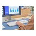 L'ensemble clavier et souris Trust Ody II offre une connectivité sans fil, idéale pour une compatibilité Mac. Ce clavier pleine taille dispose d'une disposition AZERTY avec des touches silencieuses, garantissant une expérience de frappe silencieuse. Le pavé numérique améliore la productivité pour diverses tâches. Le clavier est complété par une souris optique sans fil avec une résolution précise de 1600 DPI, offrant une navigation fluide. Les deux appareils sont alimentés par des piles, garantissant commodité et portabilité pour les utilisateurs en déplacement.