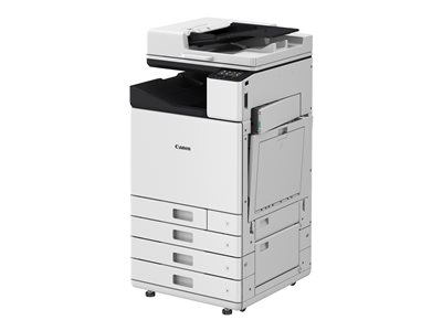 Détails concernant la manipulation de documents et de supports | | 2 x cassette de papier - 550 feuilles - A3 (297 x 420 mm) poids : 52 g/m² - 220 g/m² Bac de dérivation - 50 feuilles taille : 101.6 x 152.4 mm - 330.2 x 482.6 mm poids : 60 g/m² - 256 g/m² Bac de sortie - 100 feuilles
