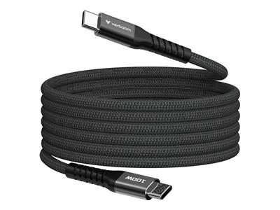 USB-C/câble d'alimentation - USB-C (M) pour USB-C (M) - 1.2 m - chargement rapide jusqu'à 100 W, câble tressé, design renforcé - noir
