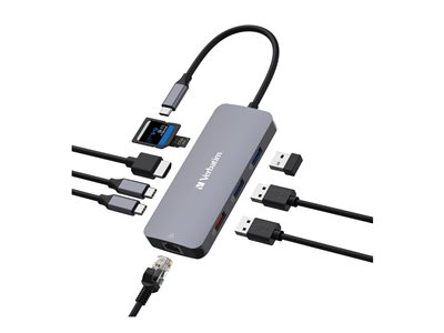 Le hub Verbatim CMH 09 est une solution complète pour connecter et charger une large gamme d'appareils. Grâce à la prise en charge de la résolution 4K, les utilisateurs peuvent profiter de vidéos haute définition sur les écrans compatibles. La fonction USB Power Delivery du hub, capable de fournir jusqu'à 85 watts, garantit que les appareils restent chargés et prêts à l'emploi. Doté de neuf ports, dont USB 3.2 Gen 2, HDMI et Gigabit Ethernet, il offre des options de connectivité polyvalentes pour divers périphériques et connexions réseau. Son design compact, complété par un câble USB-C durable de 15 cm, en fait un choix idéal pour une utilisation au bureau ou en déplacement. Que ce soit pour un usage professionnel ou personnel, le hub Verbatim CMH 09 améliore la productivité et la connectivité, ce qui en fait un ajout précieux à toute configuration.