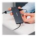 Le Verbatim CMH 13 se distingue comme une solution complète pour vos besoins en matière de connectivité et de charge. Ce hub polyvalent est équipé d'un ensemble de ports, notamment USB-C, USB-A 3.2 Gen 1 et Gen 2, HDMI, DisplayPort et Gigabit Ethernet, ce qui le rend parfait pour connecter plusieurs appareils simultanément. Avec sa prise en charge de la sortie vidéo 8K30Hz, il offre une clarté limpide pour vos écrans haute résolution, idéale pour le divertissement et l'utilisation professionnelle. En outre, la fonction USB Power Delivery du hub peut charger vos appareils avec une puissance allant jusqu'à 100 W, éliminant ainsi le besoin d'adaptateurs d'alimentation supplémentaires. Son design compact, complété par un câble USB-C de 20 cm, lui permet de s'intégrer parfaitement dans n'importe quel espace de travail, offrant ainsi un environnement sans encombrement. Que vous soyez à la maison ou au bureau, le hub Verbatim CMH 13 améliore votre productivité et votre expérience de divertissement grâce à ses performances et à sa fiabilité.