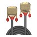 "Cable Lines" représente un concept unique dans les solutions de connectivité Lindy. Les câbles DVI-D Single Link Gold issus de ce concept sont sans compromis et de haute performance pour répondre aux besoins et environnements professionnels.Ces câbles de haute qualité ont une faible atténuation et permettent une transmission fiable et sans perte du signal.Les broches en or 24 carats, le triple blindage (constitué d'un feuillard aluminium avec couverture à 100%, et d'une tresse de cuivre étamé avec couverture à 85%) permettent une transmission du signal sans perte avec une large bande passante.