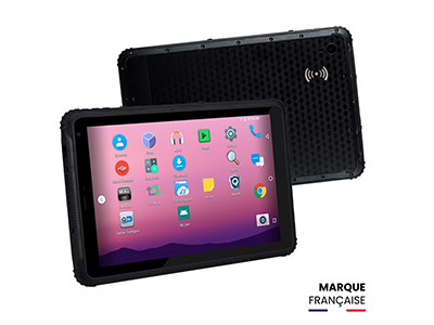 Tablette durcie 8`` : Android 10, Qualcomm 8953 8 coeurs, 4 Go RAM, 64 Go SSD, écran 1280 x 800, écran tactile capacitif, 450 nits, 4GLTE. Wifi 802.11 a/b/g/n, Bluetooth Rev 4.0, GPS, NFC, caméra 8 Mpx autofocus à l`arrière et 5 Mpx à l`avant Garantie 2 Ans constructeur