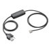Cble EHS (décroché électronique) pour contrôle à distance des appels via téléphone de bureau (prise/interruption d'appels). Ce cble rend inutile l'utilisation d'un levier décroché du combiné HL10. Ce cble fonctionne avec une large gamme de téléphones de bureau (Siemens, Funwerk, Auerswald, Agfeo, Aastra, DTeWe) et peut aussi être compatible avec les produits d'autres fabricants. Veuillez consulter notre configurateur de produit pour plus d'informations. Remarque relative au remplacement : le cble EHS APS-11 remplace le modèle APS-10 et offre une compatibilité complète avec l'accessoire d'indication de présence en ligne Plantronics.