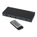Supporte les résolutions UHD jusqu'au 4K2K@30, 1080P@120, 3D et commute entre 4 entrées et 4 sorties, par touche sur le commutateur ou par la télécommande.
