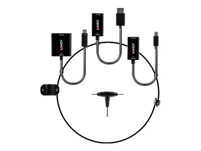 Les câbles de conversion avec attache sont des solutions compactes et sûres permettant d'utiliser le convertisseur requis avec un câble d'affichage sécurisé, offrant une connectivité simple pour différents utilisateurs et appareils sources.Le câble de conversion USB de type C, mDP et DisplayPort vers HDMI 18G de LINDY est une solution multi-AV supérieure avec des convertisseurs USB de type C, Mini DP et DisplayPort vers HDMI séparés, tous fixés solidement à un câble en acier inoxydable de 15 cm de diamètre pour un accès facile en cas de besoin. Grâce à un serre-câble intégré qui s'adapte au câble HDMI de l'écran, ce câble est parfait pour les présentations ou les environnements collaboratifs où différents utilisateurs disposent d'une variété de périphériques et de connexions. Les adaptateurs sont ainsi fixés en place, prêts à être utilisés par le prochain utilisateur.Grâce à la conversion active de son chipset, chaque convertisseur offre une compatibilité accrue avec différentes sources et cartes graphiques, y compris les PC, les ordinateurs portables et les tablettes. Prenant en charge des résolutions allant jusqu'à 3840x2160@60Hz 4:4:4 8bit, chaque convertisseur garantit une expérience de visionnage de première qualité, ce qui le rend parfait pour les expériences d'apprentissage immersives en salle de classe, les affichages attrayants en salle de conférence ou les démonstrations et formations sur le terrain.