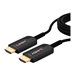 La gamme de câbles HDMI 2.1 hybrides à fibre optique de Lindy est une solution révolutionnaire pour étendre les signaux HDMI sur de plus longues distances. Combinant la flexibilité et la haute résistance aux EMI et RFI des câbles à fibre optique avec un câblage en cuivre standard, ces câbles hybrides sont idéaux pour une utilisation dans des installations AV critiques, des écrans commerciaux ou des installations résidentielles à hautes performances. La technologie interne assure une amplification non comprimée du signal HDMI, ce qui permet d'étendre le contenu HDMI 2.1 sur de longues distances, ce qui n'est tout simplement pas possible avec des câbles passifs.Grâce à une section de câble plus mince, flexible et à des connecteurs métalliques de qualité supérieure, ces câbles peuvent également être facilement installés dans espaces plus restreints.