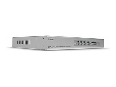 Interfaces  |  | 16 x KVM HD-15   1 x sortie VGA HD-15   2 x clavier (USB) / souris (USB) Type A   1 x entrée pour périphérique réseau empilable HD-15   1 x sortie pour périphérique réseau empilable HD-15