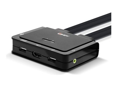Le commutateur KVM 2 ports HDMI 2.0, USB 2.0 & Audio de LINDY est une solution compacte permettant d'accéder à deux ordinateurs équipés de la technologie HDMI et de les contrôler à partir d'un seul clavier, d'une souris et d'un moniteur. Grâce aux câbles intégrés, ce commutateur peut être facilement connecté directement au système, sans avoir à acheter de câbles supplémentaires et à gagner du temps sur l'installation.La prise en charge de résolutions jusqu'à 4K Ultra HD 60Hz garantit une qualité d'image optimale, idéale pour les contenus graphiques de haut niveau dans les configurations de jeu, le montage vidéo ou les stations de travail à double système. Le port de sortie audio permet également aux utilisateurs de connecter un casque ou un haut-parleur pour ajouter un son stéréo immersif et un microphone, tandis que des périphériques USB supplémentaires peuvent être intégrés à un concentrateur USB.Le commutateur KVM propose plusieurs options de commutation, notamment via contrôle par bouton poussoir (avec un câble de 1.5m), raccourcis clavier ou commutation logicielle pour fournir un contrôle simple et fiable aux utilisateurs, qu'ils soient professionnels ou novices. Veuillez noter: ce switch KVM peut être utilisé avec des ordinateurs équipés en DisplayPort ou Mini-DisplayPort en utilisant des convertisseurs DisplayPort vers HDMI ou Mini-DisplayPort vers HDMI.