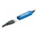 Déportez un périphérique USB 3.0, en combinant d'autres rallonges, jusqu'à 18m et plus!Jusqu'à 4 rallonges actives peuvent être utilisées entre un ordinateur USB (Host USB) et un périphérique USB. En combinaison avec d'autres segments, des distances allant jusqu'à 18m sont atteintes. Et dans certains cas particuliers, dépendant de la configuration système (carte mère, contrôleur, etc.), des distances allant jusqu'à 38m peuvent être atteintes.Le connecteur USB type A femelle possède un mécanisme à crochet, qui empêche toute déconnexion intempestive d'une autre rallonge active. Dans cette prise, il ne pourra être branché que des câbles USB ou des périphériques USB très minces!
