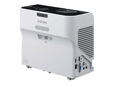 Fonctions | | Technologie Eco-Mode, Closed Caption, lecture de photos JPEG, correction de la couleur murale, fonction d'arrêt sur image (Image Freeze), possibilité d'utilisation comme tableau blanc interactif, réglage automatique de la luminosité, Real-Time Keystone Correction, Presentation Timer, Digital Zoom, partage à distance avec tableau blanc interactif Ricoh ou projecteur