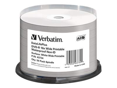 Les DVDR/RW de Verbatim utilisent la technologie MKM/Verbatim, qui assure à tout enregistrement une qualité supérieure. Grâce à son étroite collaboration avec les fabricants de lecteurs, le département de Recherche et développement de Mitsubishi Chemical assure la compatibilité étendue des disques Verbatim, ce qui en fait le support idéal pour partager des données informatiques, ainsi que des vidéos amateurs, des photos et de la musique.Les supports optiques professionnels de Verbatim présentent des spécifications plus strictes que les normes établies par les organismes de normalisation du secteur.Des spécifications plus strictes assurent une meilleure compatibilité avec les graveurs et les enregistreurs. Vous obtenez ainsi une qualité d'enregistrement supérieure, ce qui garantit une durée de vie plus longue et une meilleure lisibilité pour les archives.Le disque Wide White Glossy Waterproof dispose d'une surface blanche pour l'impression à jet d'encre jusqu'au concentrateur avec une zone d'impression de 21-118 mm. Il offre une surface résistante à l'eau et une finition brillante.
