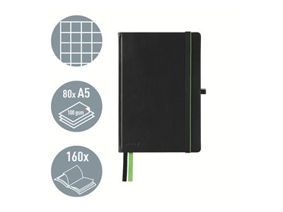 Cahier de notes - relié - A5 (148 x 210 mm) - 80 feuilles - papier ivoire - quadrillé - couverture noire