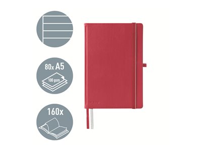 Cahier de notes - relié - A5 (148 x 210 mm) - 80 feuilles - papier ivoire - ligné - couverture rouge