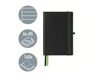 Cahier de notes - relié - A5 (148 x 210 mm) - 80 feuilles - papier ivoire - ligné - couverture noire