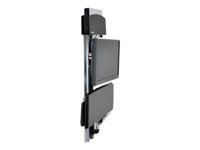 Kit de montage ( support mural, gaine de câble, support d'unité centrale, porte-souris, plateau articulé pour clavier, 2 fixations murales, étagère pour souris, repose-poignets ) pour Écran LCD / clavier / souris / processeur : Aluminium, Noir, Taille d'écran jusqu'à 24 pouces, Interface de montage 100 x 100 mm/ 75 x 75 mm Garantie 5 Ans constructeur