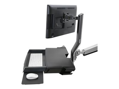 Éléments de montage | | Repose-poignets, support de fixation murale, fixation pour écran, kit de support de montage de piste, plateau de souris coulissant, bras combiné, surface de travail avec plateau pour clavier, support pour scanner et souris