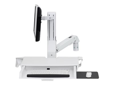 Éléments de montage | | Repose-poignets, support de fixation murale, fixation pour écran, kit de support de montage de piste, plateau de souris coulissant, bras combiné, surface de travail avec plateau pour clavier, support pour scanner et souris