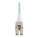 Le câble à fibre optique multimode commutable LC/UPC vers LC/UPC OM4 permet des connexions réseau 40/100G. Les boîtiers de protection rétractables permettent un changement de polarité sur site sans outils. Les connecteurs LC-Duplex codés par couleur assurent une configuration de polarité sans erreur.