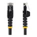 Ce câble patch Cat5e assure des connexions réseau fiables, garantissant ainsi la capacité nécessaire à vos applications Ethernet exigeantes.Recherchez la longueur et la couleur dont vous avez besoinCe câble réseau noir de 10 mètres est idéal pour les conduits et les goulottes de câbles. Il est destiné aux applications longue distance, par exemple d'un hub à un jack mural le long d'un montant ou à travers le bureau.Pour des installations réseau simplifiées, nos câbles Cat5e sont disponibles dans une grande variété de longueurs et de couleurs. Vous disposez ainsi toujours de la longueur de câble dont vous avez besoin et pouvez appliquer un code couleur à vos branchements pour une installation mieux organisée.Les connecteurs de câble RJ45 sans crochet assurent la protection de vos connexions réseauPour un câblage sans heurts, ce câble durable est doté de connecteurs sans crochet qui protègent les connecteurs de câble RJ45 des déchirures et des ruptures pendant l'installation.Il est également équipé de capuchons destinés à atténuer la tension en protégeant les extrémités du connecteur RJ45 des torsions excessives. Ceci réduit le risque d'endommager le câble et d'affecter les performances et la connectivité réseau.100 % cuivre pour une valeur exceptionnelleBénéficiez d'un rapport qualité-prix optimal en investissant dans nos câbles Ethernet Cat5e fabriqués à partir des meilleurs conducteurs en cuivre. Conçus avec précision et minutieusement testés, ils contribuent au maintien d'un niveau acceptable de diaphonie (NEXT).Fil de 0,25 mm pour une connexion réseau hautes performancesAssurez la capacité nécessaire à vos applications Ethernet exigeantes, telles que Power-over-Ethernet et la diffusion vidéo en flux continu 4K ou 1080p, grâce à des câbles dotés d'un fil de cuivre de 0,25 mm .Les connecteurs dorés de 50 microns garantissent une conductivité maximaleVous pouvez compter sur nos connecteurs RJ45 pour vous fournir une conductivité optimale, tout en éliminant les pertes de signal dues à l'oxydation ou à la corrosion.Le modèle 45PAT10MBK bénéficie de la garantie à vie StarTech.com pour une fiabilité à toute épreuve.