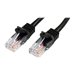 Le câble patch Cat5e 45PAT2MBK (2 m) respecte ou dépasse toutes les spécifications de câble Cat5e pour assurer une connexion réseau Ethernet fiable. Il est équipé d'une fiche PVC noire durable, qui permet de coder l'acheminement des câbles, si nécessaire.Durable, ce câble patch Cat5e de qualité supérieure est fabriqué sans crochet, ce qui contribue à protéger les clips du connecteur RJ45 et à éviter qu'il se coince pendant l'installation. Parallèlement, sa décharge de traction moulée en PVC empêche les terminaisons du connecteur RJ45 de trop se plier et réduit, du même coup, les risques de dommages.Fait uniquement de matériaux de la meilleure qualité, ce câble patch Cat5e propose un rendement fiable et bénéficie de notre garantie à vie.100 % cuivre pour une qualité remarquableObtenez la meilleure valeur ajoutée pour votre investissement avec nos câbles Cat 5e tous fabriqués avec des conducteurs en cuivre haute qualité.Câble de 0,25 mm pour une connexion réseau haute performanceObtenez une capacité haute performance pour vos applications Ethernet exigeantes, comme l'alimentation PoE, avec des câbles de cuivre de 0,25 mm .Les connecteurs en or de 50 microns offrent une conductivité optimaleFiez-vous à nos connecteurs RJ45 pour obtenir une conductivité optimale tout en éliminant la perte de signal due à l'oxydation ou la corrosion.