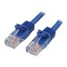 Le câble patch Cat5e 45PAT2MBL (2 m) respecte ou dépasse toutes les spécifications de câble Cat5e pour assurer une connexion réseau Ethernet fiable. Il est équipé d'une fiche PVC bleue durable, qui permet de coder l'acheminement des câbles, si nécessaire.Durable, ce câble patch Cat5e de qualité supérieure est fabriqué sans crochet, ce qui contribue à protéger les clips du connecteur RJ45 et à éviter qu'il se coince pendant l'installation. Parallèlement, sa décharge de traction moulée en PVC empêche les terminaisons du connecteur RJ45 de trop se plier et réduit, du même coup, les risques de dommages.Fait uniquement de matériaux de la meilleure qualité, ce câble patch Cat5e propose un rendement fiable et bénéficie de notre garantie à vie.100 % cuivre pour une qualité remarquableObtenez la meilleure valeur ajoutée pour votre investissement avec nos câbles Cat 5e tous fabriqués avec des conducteurs en cuivre haute qualité.Câble de 0,25 mm pour une connexion réseau haute performanceObtenez une capacité haute performance pour vos applications Ethernet exigeantes, comme l'alimentation PoE, avec des câbles de cuivre de 0,25 mm .Les connecteurs en or de 50 microns offrent une conductivité optimaleFiez-vous à nos connecteurs RJ45 pour obtenir une conductivité optimale tout en éliminant la perte de signal due à l'oxydation ou la corrosion.