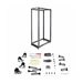 Contenu de l'emballage | | 50 vis M6, 16 vis M6, 50 écrous à cage M6, 4 rails verticaux pour rack, 24 vis de montage, 2 supports de base, 2 supports supérieurs, 48 boulons M8, 8 sections de coin, 48 rondelles M8, clé M8 (13 mm), 50 rondelles à collerette en PVC, 24 crochets de gestion des câbles, 4 x roulettes, 4 pieds de nivellement, 32 rondelles plates M6, 16 écrous à flasque M6