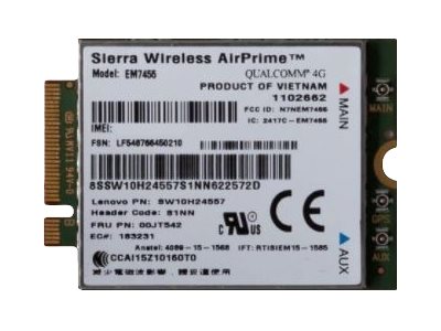 Conçu pour | | Lenovo ThinkPad A475 20KL (mise à niveau WWAN), 20KM (mise à niveau WWAN) Lenovo ThinkPad L470 20J4 (mise à niveau WWAN), 20J5 (mise à niveau WWAN), 20JU (mise à niveau WWAN), 20JV (mise à niveau WWAN) Lenovo ThinkPad L570 20J8 (mise à niveau WWAN), 20J9 (mise à niveau WWAN), 20JQ (mise à niveau WWAN), 20JR (mise à niveau WWAN) Lenovo ThinkPad P50 20EN (mise à niveau WWAN), 20EQ (mise à niveau WWAN) Lenovo ThinkPad P50s 20FK (mise à niveau WWAN), 20FL (mise à niveau WWAN) Lenovo ThinkPad P51 20HH (mise à niveau WWAN), 20HJ (mise à niveau WWAN) Lenovo ThinkPad P51s 20HB (mise à niveau WWAN), 20HC (mise à niveau WWAN), 20JY (mise à niveau WWAN), 20K0 (mise à niveau WWAN) Lenovo ThinkPad P70 20ER (mise à niveau WWAN), 20ES (mise à niveau WWAN) Lenovo ThinkPad P71 20HK (mise à niveau WWAN), 20HL (mise à niveau WWAN) Lenovo ThinkPad T25 20K7 (mise à niveau WWAN) Lenovo ThinkPad T470 20HD (mise à niveau WWAN), 20HE (mise à niveau WWAN), 20JM (mise à niveau WWAN), 20JN (mise à niveau WWAN) Lenovo ThinkPad T470p 20J6 (mise à niveau WWAN), 20J7 (mise à niveau WWAN) Lenovo ThinkPad T470s 20HF (mise à niveau WWAN), 20HG (mise à niveau WWAN), 20JS (mise à niveau WWAN), 20JT (mise à niveau WWAN) Lenovo ThinkPad T570 20H9 (mise à niveau WWAN), 20HA (mise à niveau WWAN), 20JW (mise à niveau WWAN), 20JX (mise à niveau WWAN) Lenovo ThinkPad X12 Detachable 20UV (mise à niveau WWAN), 20UW (mise à niveau WWAN) Lenovo ThinkPad X270 20HM (mise à niveau WWAN), 20HN (mise à niveau WWAN), 20K5 (mise à niveau WWAN), 20K6 (mise à niveau WWAN)