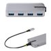 USB Type-C vers 4x USB Type-A - USB 3.2 Gen 1 (5Gbps) - Entrée d'Alimentation Auxiliaire Micro USB (jusqu'à 4,5W)Ce hub USB ajoute quatre ports USB-A 3.2 Gen 1 (5Gbps) à un ordinateur de bureau ou un ordinateur portable compatible USB-C. Le hub USB se connecte à un port USB-C sur un ordinateur, à l'aide du câble hôte intégré de 30 cm. Le hub USB est rétrocompatible avec les périphériques USB 2.0 (480Mbps), ce qui garantit la prise en charge d'une large gamme de périphériques USB modernes et anciens (par exemple, clés USB, disques durs/SSD externes, caméras HD, souris, claviers, webcams et casques audio). Le hub USB est de taille compacte, ce qui facilite la portabilité lors des déplacements.Alimentation par bus avec alimentation auxiliaire en optionLe hub USB peut fonctionner uniquement avec l'alimentation par bus. Il dispose d'une entrée d'alimentation Micro USB qui peut être connectée à un adaptateur d'alimentation USB (vendu séparément), fournissant jusqu'à 4,5W (5V/0,9A) d'alimentation en plus des 15W d'alimentation du bus. Cette flexibilité est idéale pour les applications nécessitant une alimentation supplémentaire, comme la connexion d'un périphérique USB à haute puissance (par exemple, un disque dur/SSD externe), tout en utilisant les autres ports pour connecter des périphériques moins puissants. Les ports en aval sont chacun capables de fournir jusqu'à 4,5 W d'alimentation aux périphériques connectés. Pour une protection accrue des périphériques USB connectés, les ports USB disposent d'une protection contre les surintensités (OCP). L'OCP empêche les périphériques USB de consommer plus d'énergie que ce qui est alloué en toute sécurité pour chaque port.Plug and PlayCe dispositif est indépendant du système d'exploitation et prend en charge tous les systèmes d'exploitation, notamment Windows, macOS, ChromeOS, iPadOS et Android. Le Hub est automatiquement détecté, configuré et installé lors de la connexion à un ordinateur hôte. Cela garantit une installation automatique et avec n'importe quel ordinateur portable USB-C, y compris les ordinateurs Thunderbolt 3, Thunderbolt 4 et USB4 tels que Apple MacBook (Intel/M1/M2), Lenovo X1 Carbon et Dell XPS. Le câble hôte USB-C extra-long intégré de 30 cm assure une installation facile et réduit la tension du connecteur sur les appareils 2-en-1 tels que la Surface Pro 7, l'iPad Pro, le HP Elite X2 et les ordinateurs portables sur des supports élévateurs.Améliorer la productivité et la gestion des périphériques avec l'application Connectivity ToolsDéveloppée pour améliorer les performances et la sécurité, Connectivity Tools est la seule suite logicielle du marché compatible avec une grande variété d'accessoires de connectivité informatique. Le logiciel applicable à ce produit est l'utilitaire de surveillance des événements USB. Utilisez cet utilitaire pour suivre et consigner tout périphérique USB connecté.