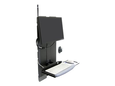 Kit de montage ( modèle de fixation à trous, repose-poignets, pochette pour souris, levage vertical du panneau, adaptateur VESA, tiroir à clavier ) pour Écran LCD/clavier/souris - acier - noir - Taille d'écran : 24" - Interface de montage : 100 x 100 mm, 75 x 75 mm - mural Garantie 5 Ans constructeur