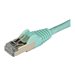 Câble de raccordement CAT6 de 1,5 m - Sans crochet - Blindé - Fil en 100 % Cuivre - TurquoiseCe câble Cat6a respecte ou dépasse toutes les spécifications des câbles de catégorie 6a pour garantir des connexions réseau 10Gb fiables. Le câble est blindé pour protéger votre réseau contre les interférences électromagnétiques (EMI/RFI) et le bruit du système, offrant ainsi la solution idéale pour des connexions réseau rapides et sécurisées.Trouvez la longueur et la couleur dont vous avez besoinCe câble de raccordement aqua de 1,5 mètre est parfait pour des applications standard telles que la connexion d'une prise murale à votre station d'accueil pour ordinateur portable ou à votre ordinateur de bureau.Pour faciliter les installations réseau, nos câbles de raccordement Cat6a sont disponibles dans une grande variété de longueurs et de couleurs. Cela garantit que vous disposez de la taille de câble appropriée lorsque vous en avez besoin et vous permet de coder vos connexions par couleur pour une configuration plus organisée.Connexions Cat6a 10 Gigabit fiablesChaque câble est testé pour une fréquence allant jusqu'à 500MHz et est plus que suffisant pour les réseaux Ethernet 10GBase-T.Construit avec du cuivre à 100% et un câblage en paires torsadées blindées, ce câble a été conçu pour des performances de qualité. Le câble est conçu pour maintenir les signaux de données transitant par votre réseau à l'abri des interférences et est parfait dans les environnements sujets à de grandes quantités d'EMI.Les connecteurs plaqués or 50 microns offrent une conductivité optimale et éliminent les pertes de signal dues à l'oxydation ou à la corrosion.Les clips RJ45 anti-accroc protègent vos connexions réseauPour des câblages sans problème, ce câble durable est équipé de connecteurs anti-accroc qui protègent les clips RJ45 lors de l'installation, les rendant moins susceptibles de s'accrocher ou de se casser.Le câble dispose également de manchons moulés qui offrent un soulagement de la tension au niveau des connecteurs en empêchant les points de terminaison des connecteurs RJ45 de se plier à des angles aigus. Cela réduit le risque d'endommagement du câble, ce qui pourrait diminuer la connectivité et les performances du réseau.