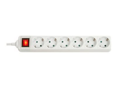 Lindy Multiprise 6 prises Schuko avec interrupteur, blanc Multiprise 6 prises Schuko orientées à 45°, pour faciliter le branchement, cordon secteur longueur 1,4m, avec interrupteur