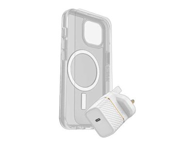La série Symmetry d'OtterBox redéfinit les normes de protection et de style pour votre téléphone portable. Fabriqué avec précision, cet étui de protection présente un design élégant qui complète l'esthétique de votre appareil tout en offrant une protection robuste. Ses bords surélevés protègent votre écran des chutes et des rayures accidentelles, tandis que la compatibilité 5G et la prise en charge de la recharge sans fil garantissent que les fonctionnalités de votre téléphone ne sont pas compromises. De plus, l'étui est conçu dans le respect de l'environnement, avec 50 % de plastique recyclé. Il répond également aux normes rigoureuses MIL-STD-810G 516.6, offrant une protection supérieure contre les chocs et les chutes. Pour améliorer votre expérience, cet étui est livré avec une protection d'écran en verre Premium et un chargeur mural à charge rapide USB-C 30W, ce qui en fait une solution complète pour les besoins de protection et de charge de votre téléphone portable. Choisissez la série OtterBox Symmetry pour un étui qui offre une protection et un engagement en faveur du développement durable.