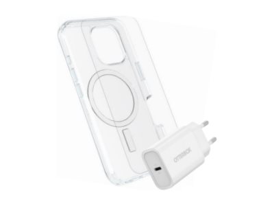 La housse de protection OtterBox Symmetry Series offre une protection fiable pour les téléphones portables. Avec son design épuré et ses caractéristiques magnétiques, cette coque allie style et fonctionnalité. La conception rigide de l'étui présente des bords surélevés autour de l'appareil photo et un rebord d'écran pour une sécurité accrue contre les chutes. Équipée de points d'ancrage intégrés, cette housse prend en charge la recharge sans fil, garantissant ainsi la commodité sans compromettre la protection.Conforme à la norme MIL-STD-810G 516.6, l'étui OtterBox offre une protection contre les chutes, ce qui en fait un choix durable pour une utilisation quotidienne. Fabriquée à partir de 40 % de plastique recyclé, cette option respectueuse de l'environnement contribue à un avenir plus durable. L'ensemble comprend un protecteur d'écran en verre Premium et un chargeur mural à charge rapide USB-C 30W, offrant une solution tout-en-un pour la protection du téléphone portable et les besoins de charge.