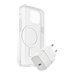La housse de protection OtterBox Symmetry Series est conçue pour les téléphones portables, offrant une protection robuste sans sacrifier le style. Ce design ultra-mince comprend des bords renforcés et des bords surélevés autour de l'appareil photo pour une sécurité accrue, garantissant que votre appareil reste à l'abri des chocs et des chutes. Les aimants intégrés et la prise en charge du chargement sans fil le rendent pratique à utiliser, tandis que le rebord de l'écran protège ce dernier des rayures. Un protecteur d'écran en verre de qualité supérieure et un chargeur mural à charge rapide USB-C 30W sont inclus dans votre achat, ce qui augmente la valeur de votre nouvel étui de protection. Fabriqué à partir de 40 % de plastique recyclé, cet étui protège votre appareil et contribue aux efforts de développement durable. Conforme à la norme MIL-STD-810G 516.6, il offre une protection fiable contre les chocs ainsi qu'une fonctionnalité élégante, ce qui en fait un accessoire essentiel pour tout utilisateur de smartphone.