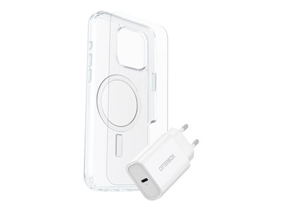 Coque de protection pour téléphone portable - compatibilité avec MagSafe - clair - avec protection d'écran en verre de qualité supérieure et chargeur mural à charge rapide USB-C 30W - pour Apple iPhone 16 Pro Max