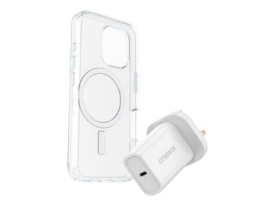 Coque de protection pour téléphone portable - compatibilité avec MagSafe - clair - avec protection d'écran en verre de qualité supérieure et chargeur mural à charge rapide USB-C 30W - pour Apple iPhone 16 Pro Max
