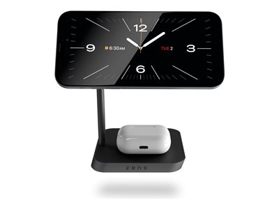 Le socle de recharge sans fil Zens 2 d'Otter Products offre une solution d'alimentation pour les utilisateurs de technologies actuelles. Conçu pour les téléphones portables et les écouteurs sans fil, ce socle permet une recharge fluide et peut accueillir vos appareils en position horizontale ou verticale. Capable de recharger jusqu'à deux appareils simultanément et compatible avec les accessoires MagSafe, il améliore le confort de la recharge sans fil. Le matériau en alliage de zinc garantit sa durabilité tout en ajoutant une touche moderne à n'importe quel espace. Un adaptateur secteur est inclus, ce qui facilite la mise en route de la norme de recharge sans fil Qi, réputée pour sa fiabilité.