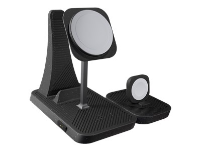 Le socle de recharge sans fil Zens Modular d'Otter Products est conçu pour simplifier la recharge de plusieurs appareils dans une seule station élégante. Cette solution de recharge 4 en 1 prend en charge les tablettes, les smartphones, les montres connectées et les écouteurs sans fil, ce qui en fait un accessoire idéal pour les foyers disposant de plusieurs appareils. Le socle est équipé d'un adaptateur secteur intégré et fournit jusqu'à 30 W de puissance, garantissant une recharge rapide et efficace pour tous les appareils compatibles.Fabriquée à partir de plastique recyclé, cette station de recharge est à la fois fonctionnelle et durable. Compatible avec MagSafe, dotée d'une fonction de veille et d'un système modulaire magnétique, elle permet aux utilisateurs de personnaliser leur expérience de recharge. Le Zens Modular est également compatible avec les étuis pour appareils d'une épaisseur maximale de 3 mm, garantissant ainsi une protection sans compromis sur le confort d'utilisation.