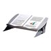 En Plaçant les documents à plat sur le bureau, ou dans un angle de vue inconfortable, une pression peut être exercée sur les yeux, le cou et les épaules. Le porte documents incliné Easy Guide de Fellowes est idéal pour un espace de travail ergonomique et devient le compagnon de tous les employés. Stylé et amovible, il vous aide à garder votre bureau organisé; le porte documents incliné Easy Glide au design contemporain améliore votre posture de travail. A positionner entre l'écran ou l'ordinateur portable et le clavier, les rebords peuvent supporter des catalogues ou des livres jusqu'à 5kg. La plate-forme principale glisse librement en avant pour couvrir le clavier créant une zone d'écriture ergonomique, avec un plateau amovible pour les accessoires et les câbles. L'angle est facilement réglable entre 7.5 ° et 37.5 ° pour avoir un angle de vue optimal. Pour plus de robustesse et de stabilité, des pieds en caoutchouc sont intégrés.Accrédité par Fira International, un accréditeur ergonomique indépendant.