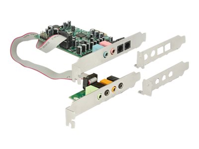 Interfaces | | 1 x entrée de ligne audio - mini-phone stereo 3.5 mm 1 x microphone - mini-phone stereo 3.5 mm 1 x entrée SPDIF - TOSLINK 1 x sortie SPDIF - TOSLINK 1 x haut-parleurs (avant) - mini-phone stereo 3.5 mm 1 x haut-parleurs (surround avant) - mini-phone stereo 3.5 mm 1 x haut-parleurs (centre/caisson de basses) - mini-phone stereo 3.5 mm 1 x haut-parleurs (arrière) - mini-phone stereo 3.5 mm