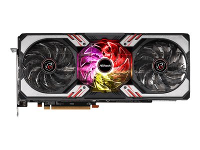 Technologie AMD Eyefinity, technologie Super Alloy Power, Ventilateur d'emplacement de 2,75, 0dB Technology, AMD FidelityFx, Polychrome SYNC, RDNA 2 Architecture, DirectX Raytracing (DXR), Phantom Gaming 3X Cooling System, Striped Axial Fan, Reinforced Metal Frame, HDCP