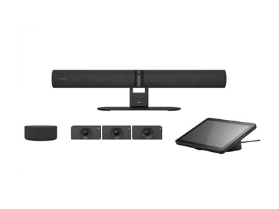 Contenu du kit | | PanaCast 55 VBS video bar, Jabra Control IP, PanaCast SpeakerMic, 3 Jabra Cam Crew cameras