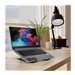 Le support de voyage & pliable pour ordinateur portable de PORT Connect est compatible avec les ordinateurs portables de 10" à 15,6" et la plupart des tablettes. Son design ergonomique donne le choix entre 6 angles différents permettant l'adoption d'une posture confortable et naturelle. Il se transporte facilement dans sa pochette dédiée grâce à sa structure ultra-légère et pliable. De plus, son corps en aluminium entièrement ouvert, dissipant la chaleur, maximise les performances de l'ordinateur portable lors d'une utilisation prolongée. Une sécurité optimale de l'appareil est également assurée grâce à ses crochets de sécurité et ses patins antidérapants.